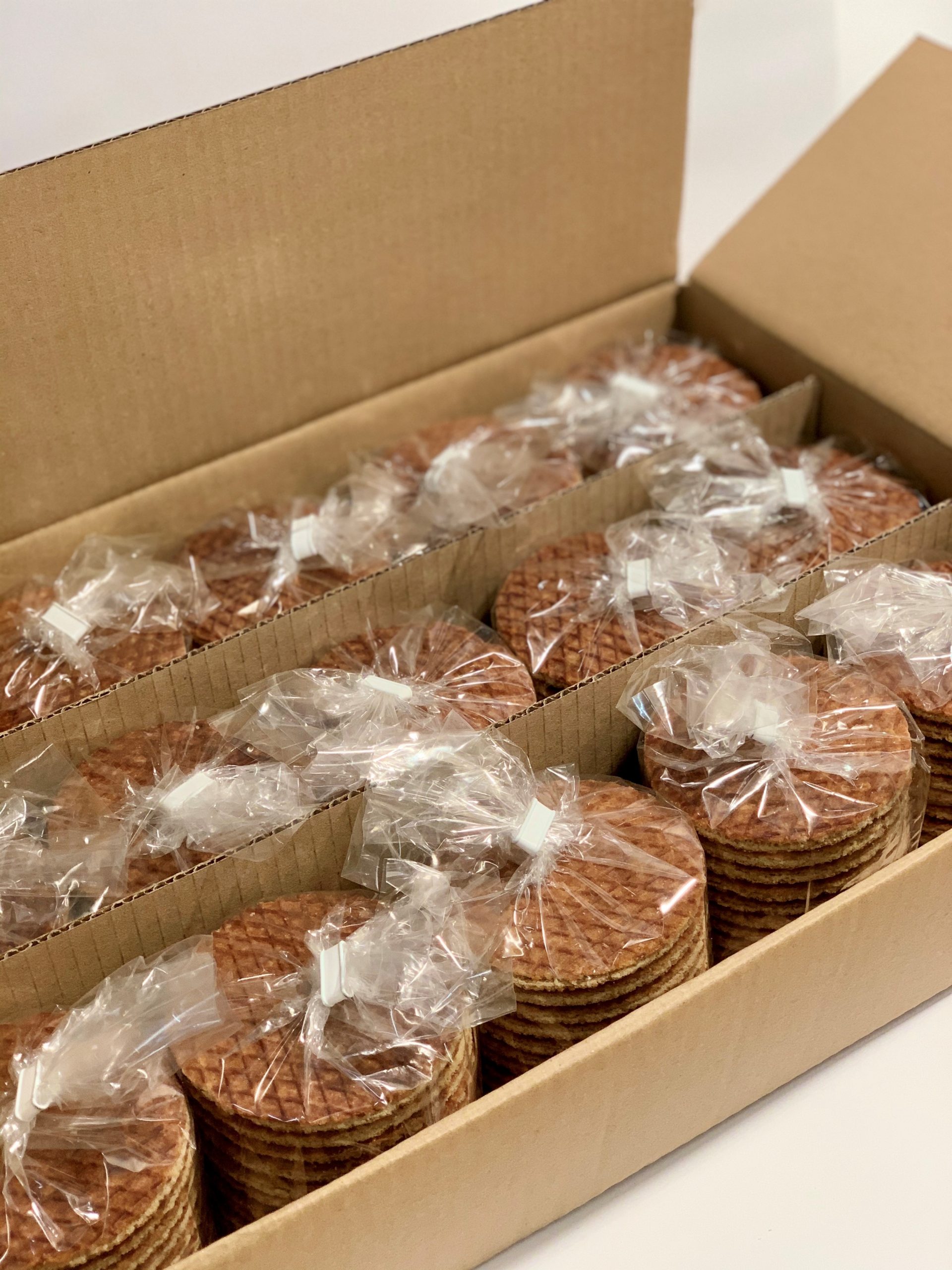 Vandaag ontvingen we van een hele lieve vaste donateur een volle doos met stroopwafels.